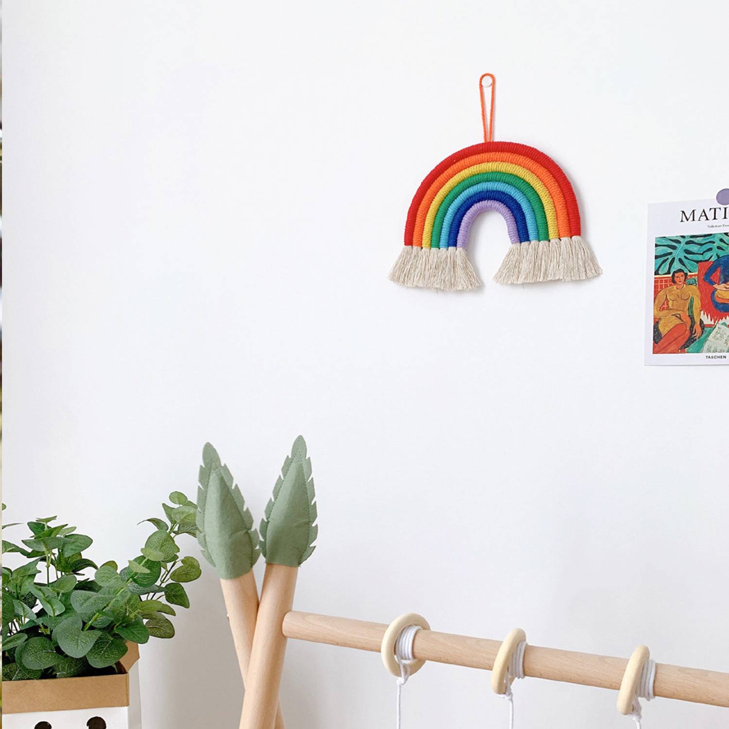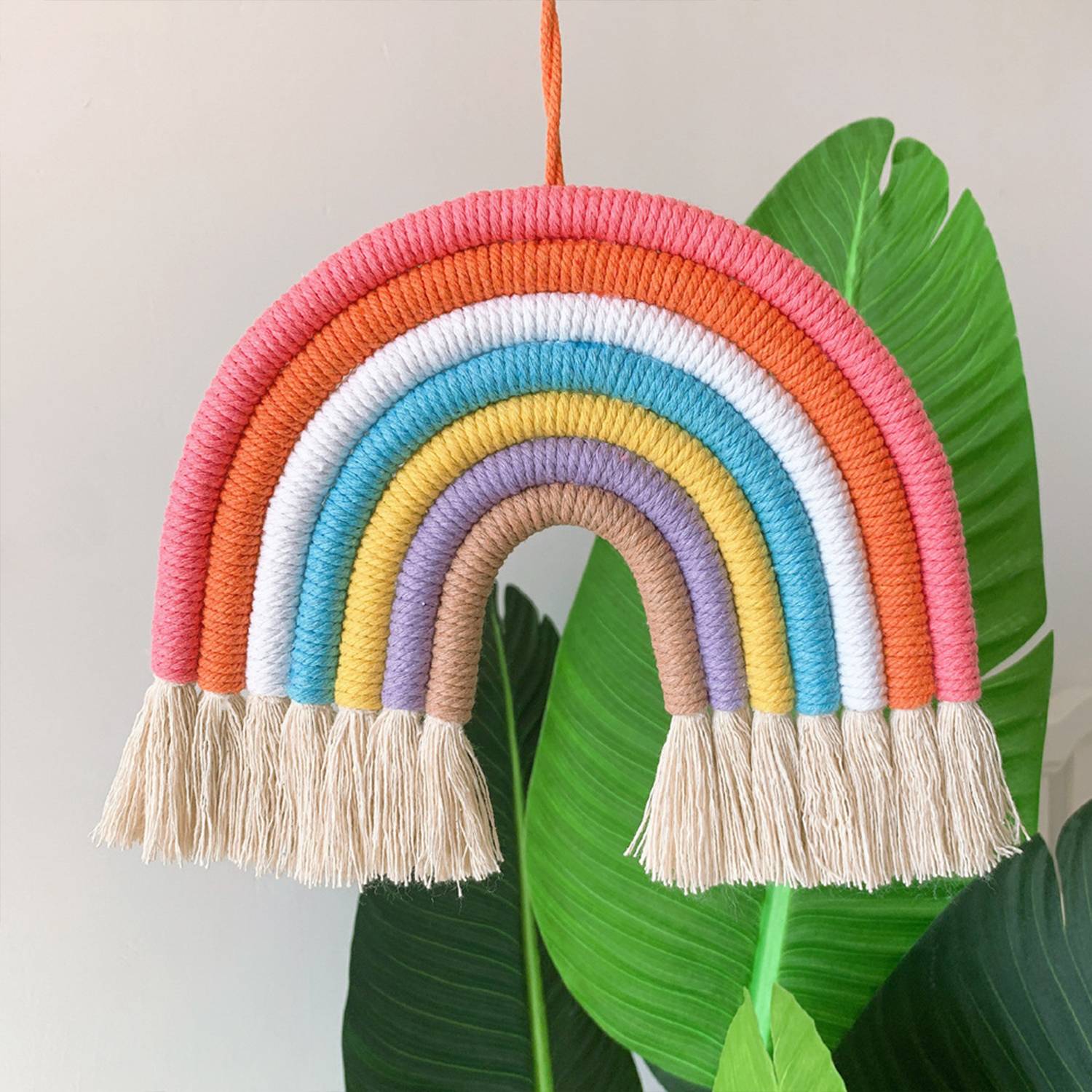 Handcrafted beautiful decorations made of yarn and cotton rope, which is comfortable to the hand, not easy to fade, not easy to damage, durable, safe and healthy. Add character and charm to any wall in your house with this woven rainbow wall hanging.