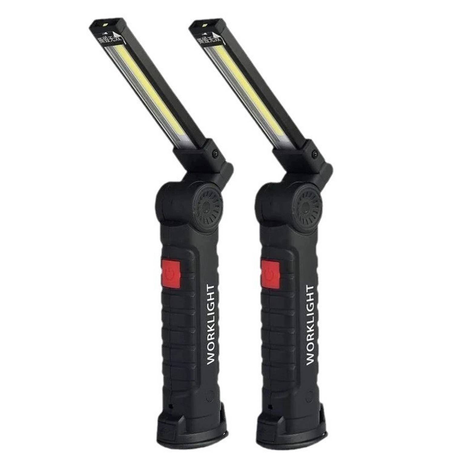 Adjustable magnetic work light with COB LEDs, plastic body, rechargeable battery. Durable, safe, ideal for repairs, camping.