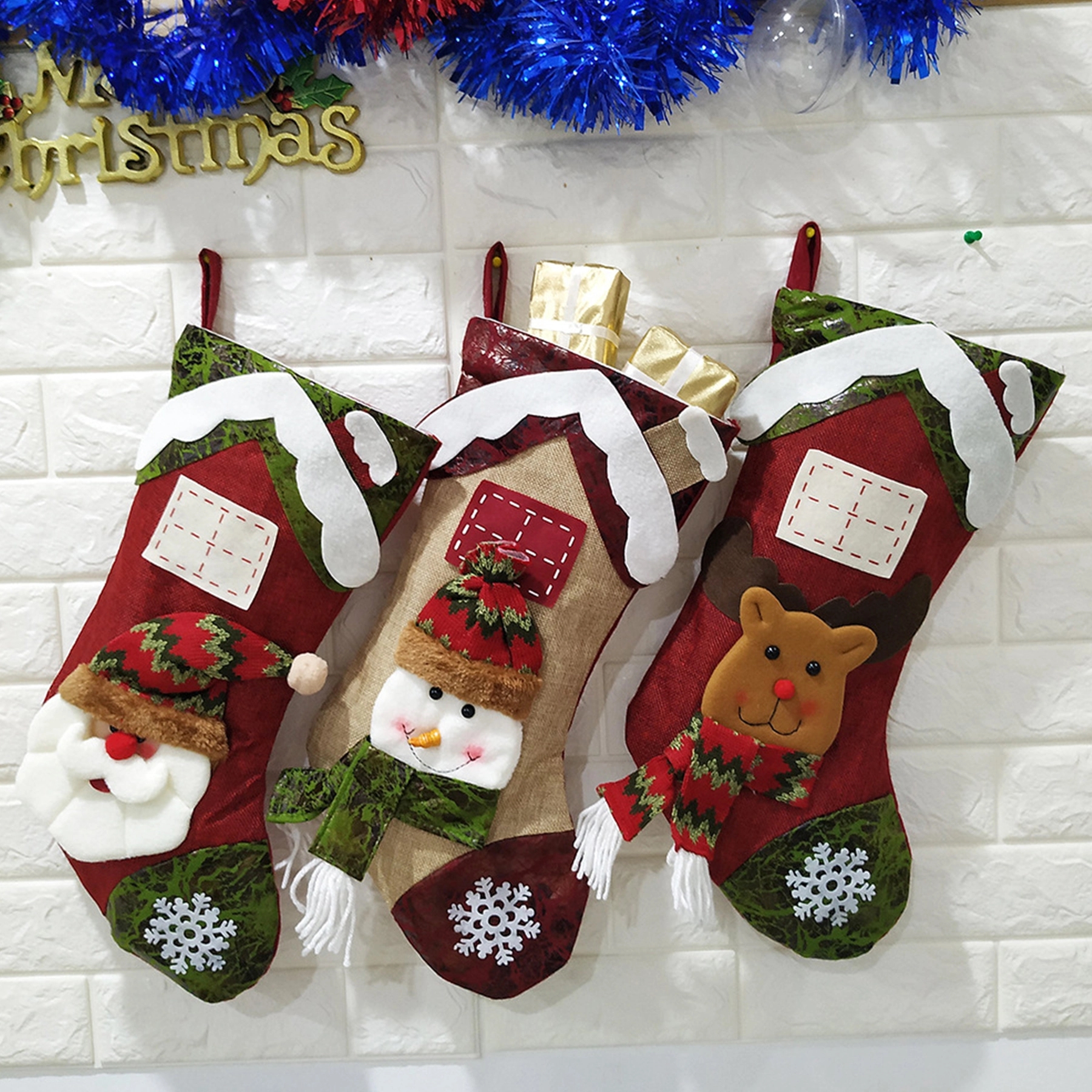 Christmas stockings made of non-woven fabric.