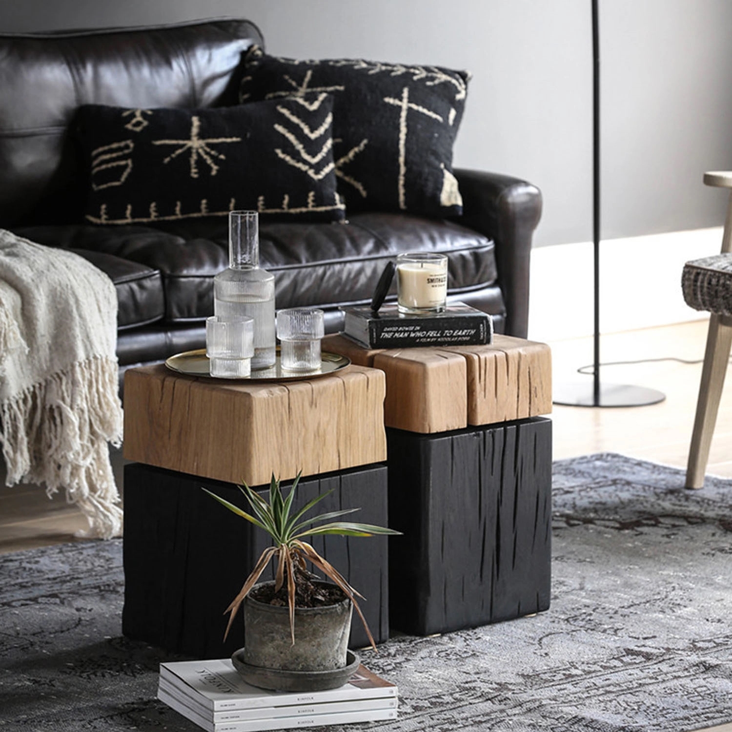 Solid Oak Wood Square Side Table With Mixed Color