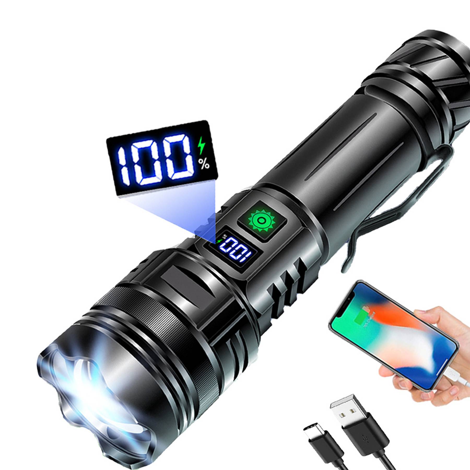 Outdoor TYPE-C Charging Ultra Bright Digital Flashlight