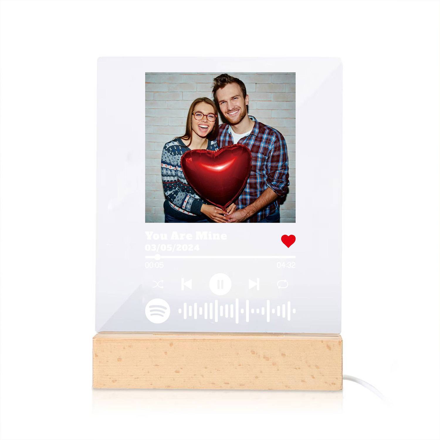 Personalized acrylic music plaque with photo and song code, perfect gift for couples, anniversaries, and special occasions.
