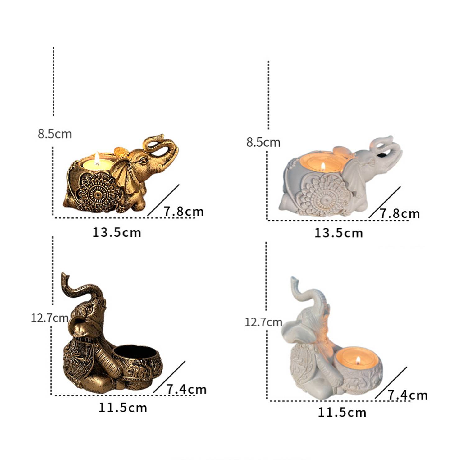 Enhance any space with our elegant resin elephant candle holder. Available in 2 sizes and 2 colors. Perfect gift!