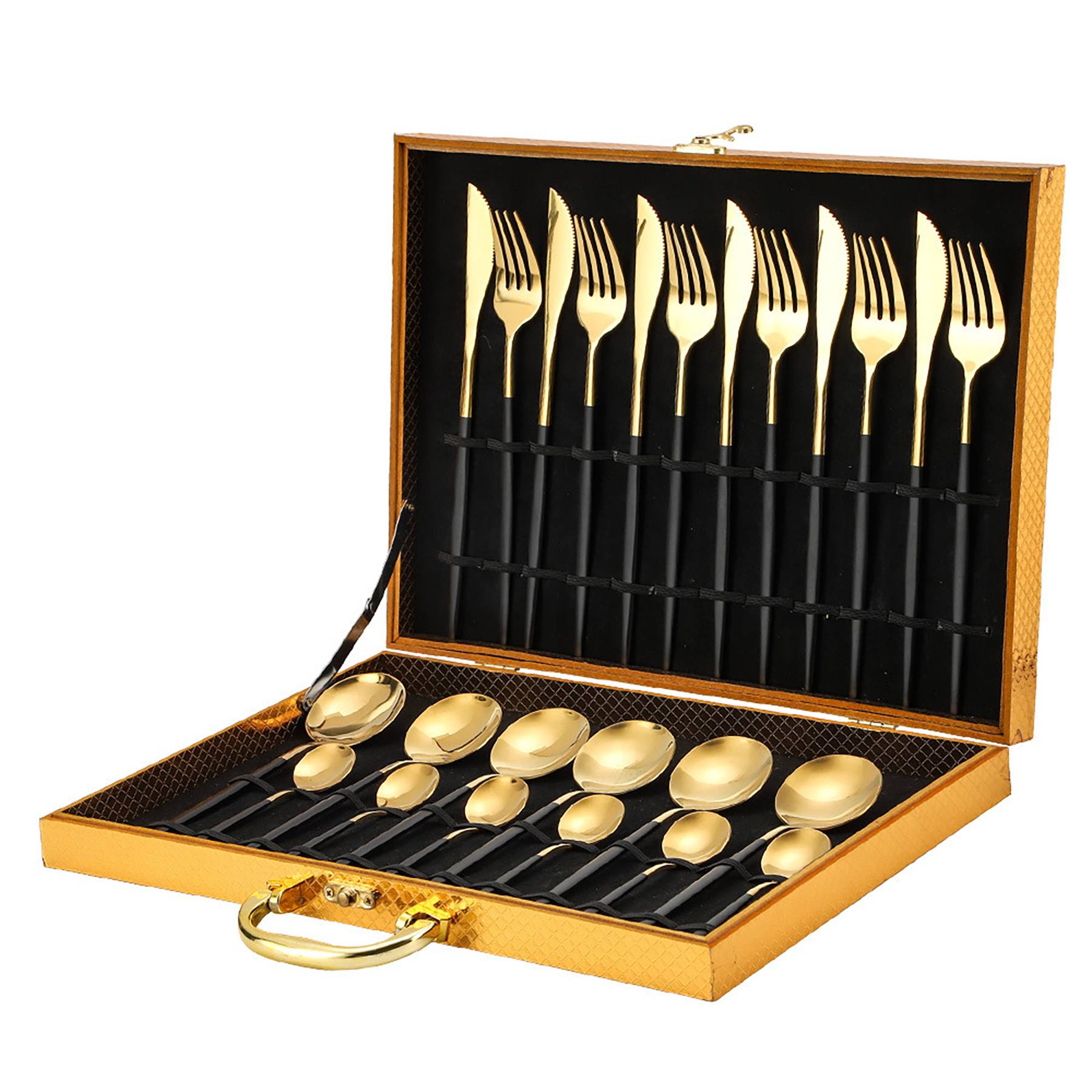 24pcs Gold Stainless Steel Tableware Cutlery Set Gift Box