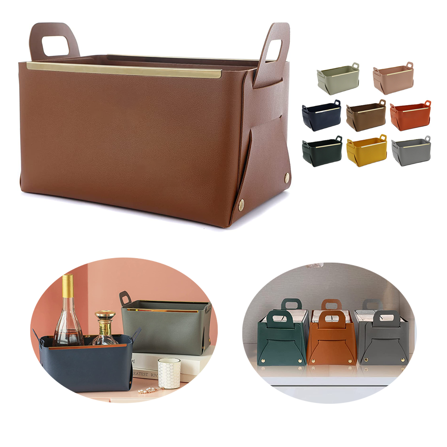 Small Leather Foldable Storage Basket
