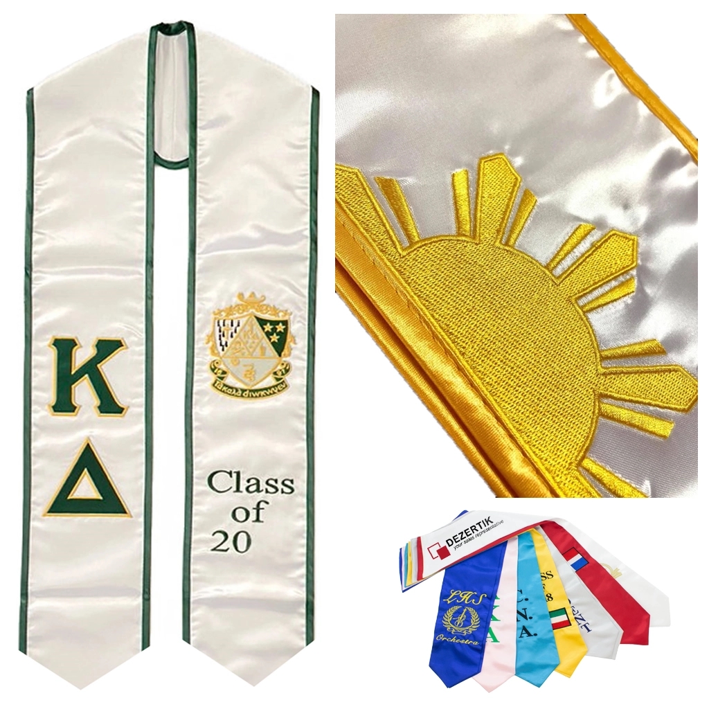 Lightweight, high-gloss polyester satin graduation stole, perfect for embroidery, signatures, or printing.