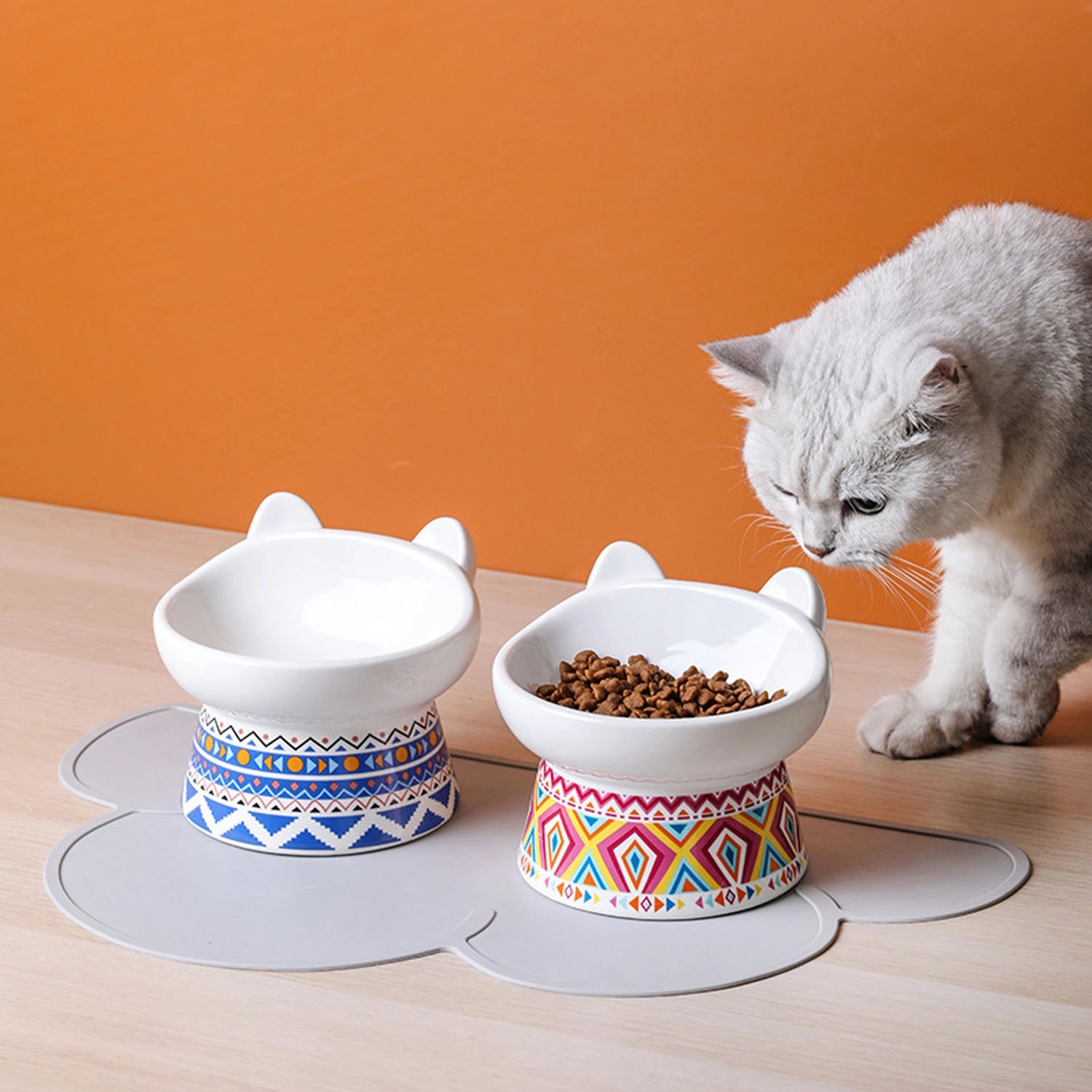 Bohemian Design Elevated Ceramic Cat Food Bowl