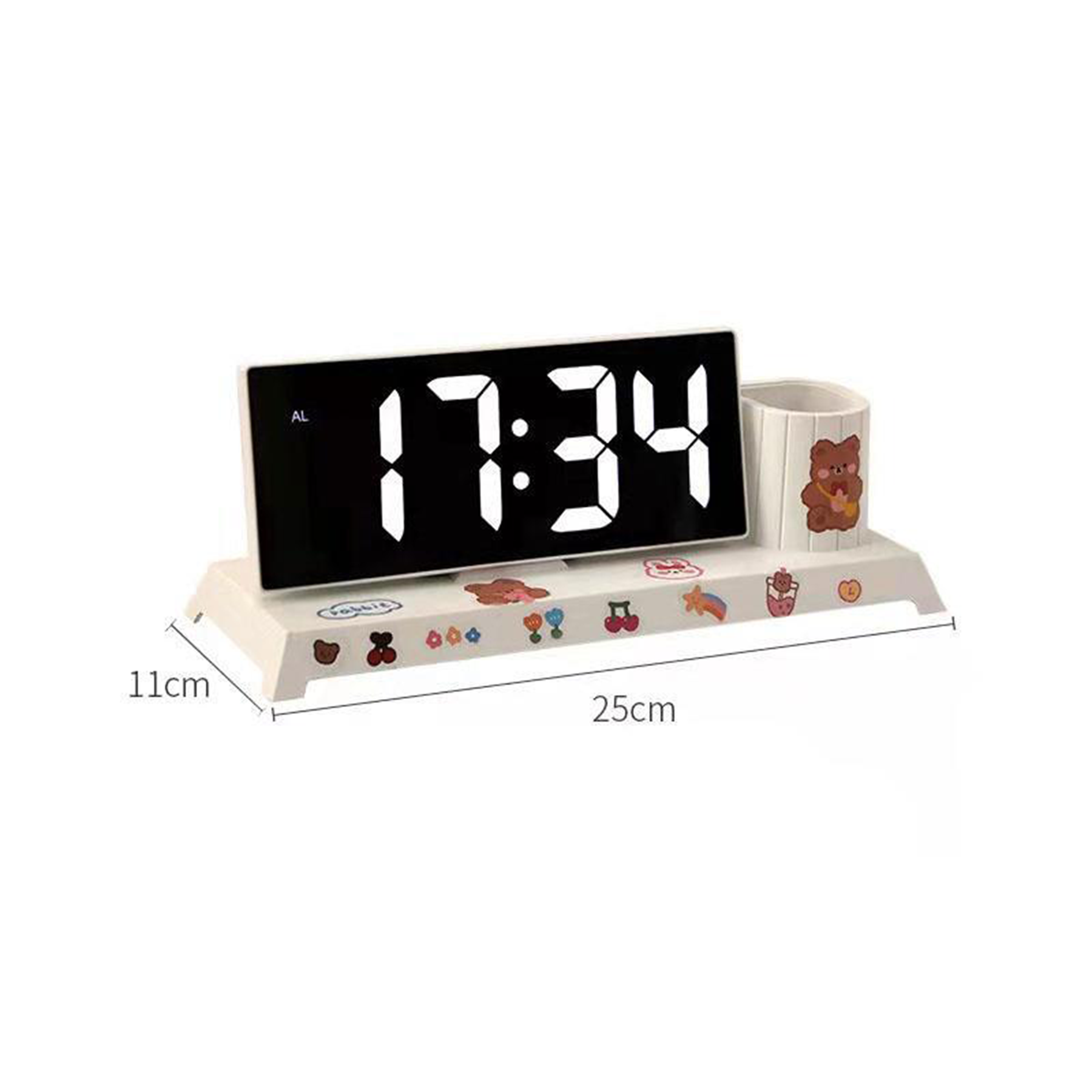The LED desk clock can be used as alarm clock, temperature display, LED night light, even the pen holder.