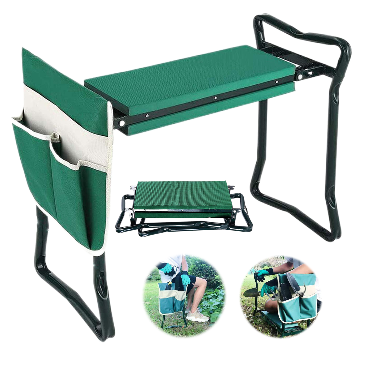 Foldable Gardening Stool Kneeling Bench With Tool Pouch