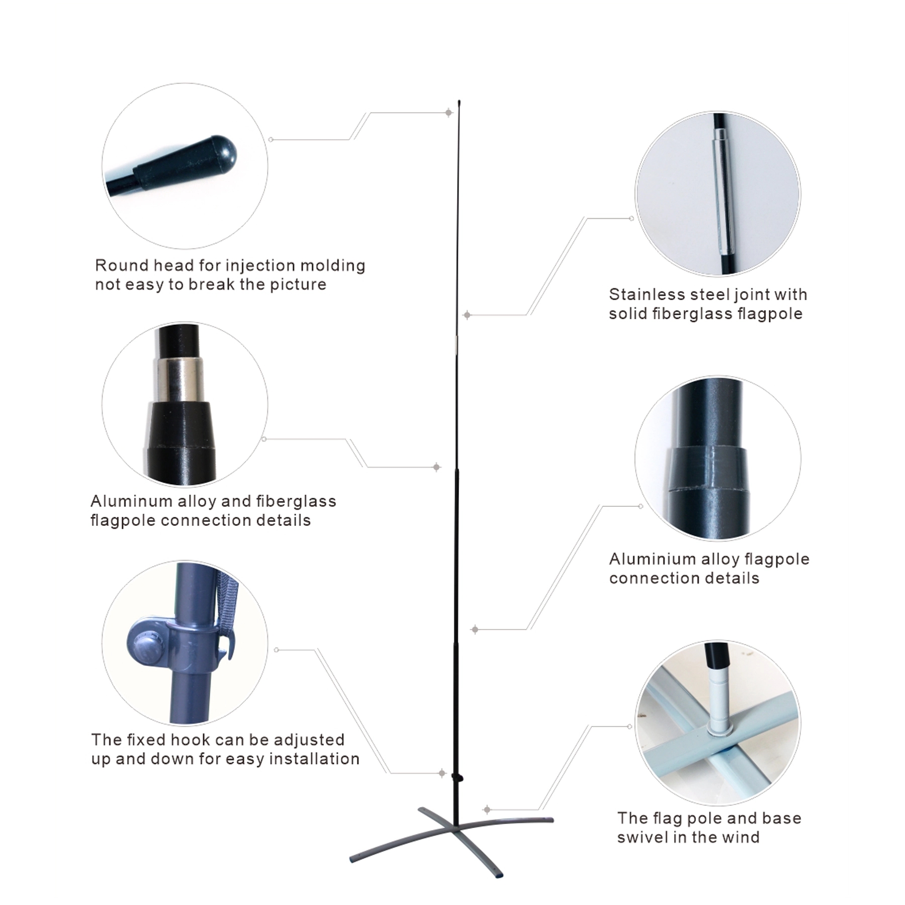 This knife-shaped beach flag is made of warp-knitted cloth + aluminum alloy + glass fiber material.