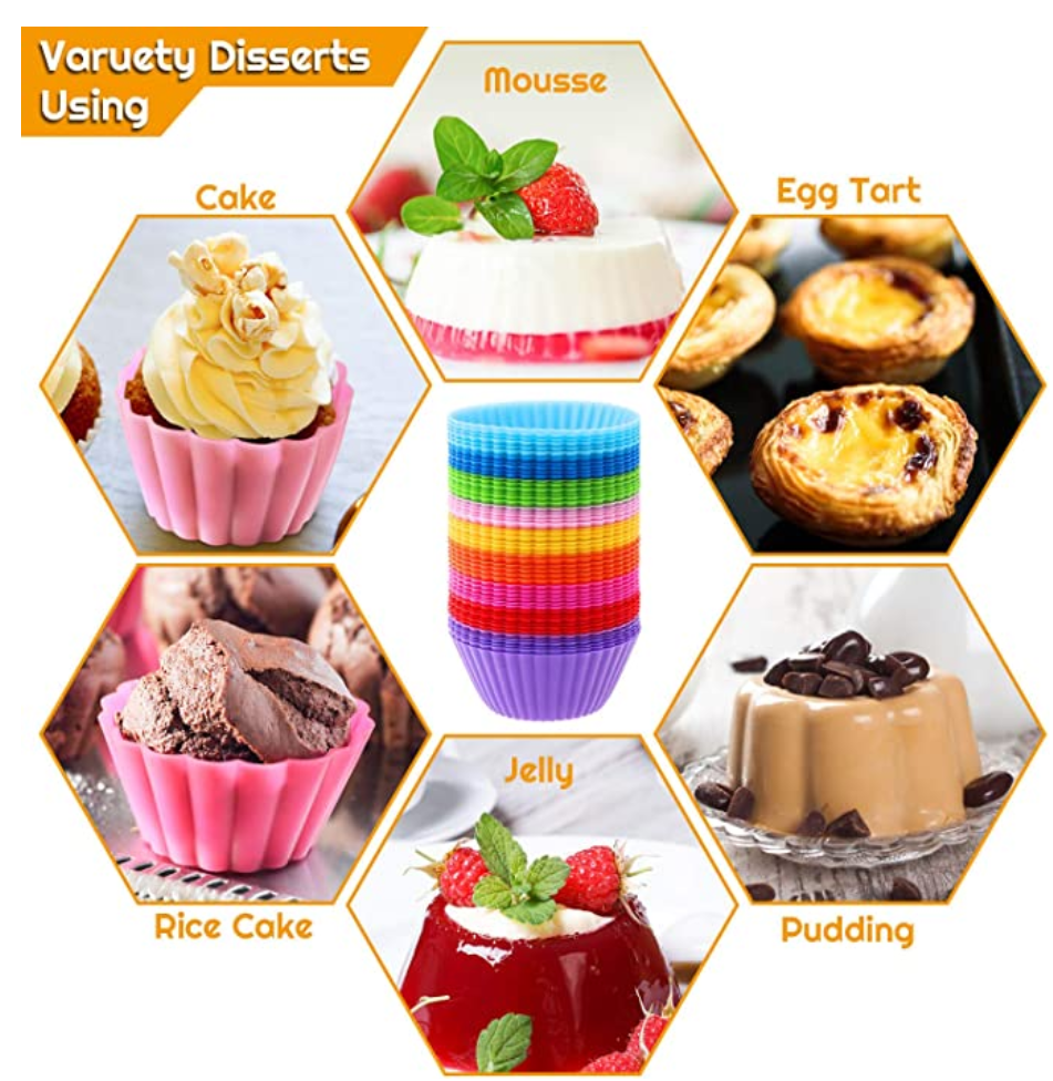 This cupcake mold is made of food-grade silicone material, make cupcakes for birthdays or holiday with these colorful baking cups.