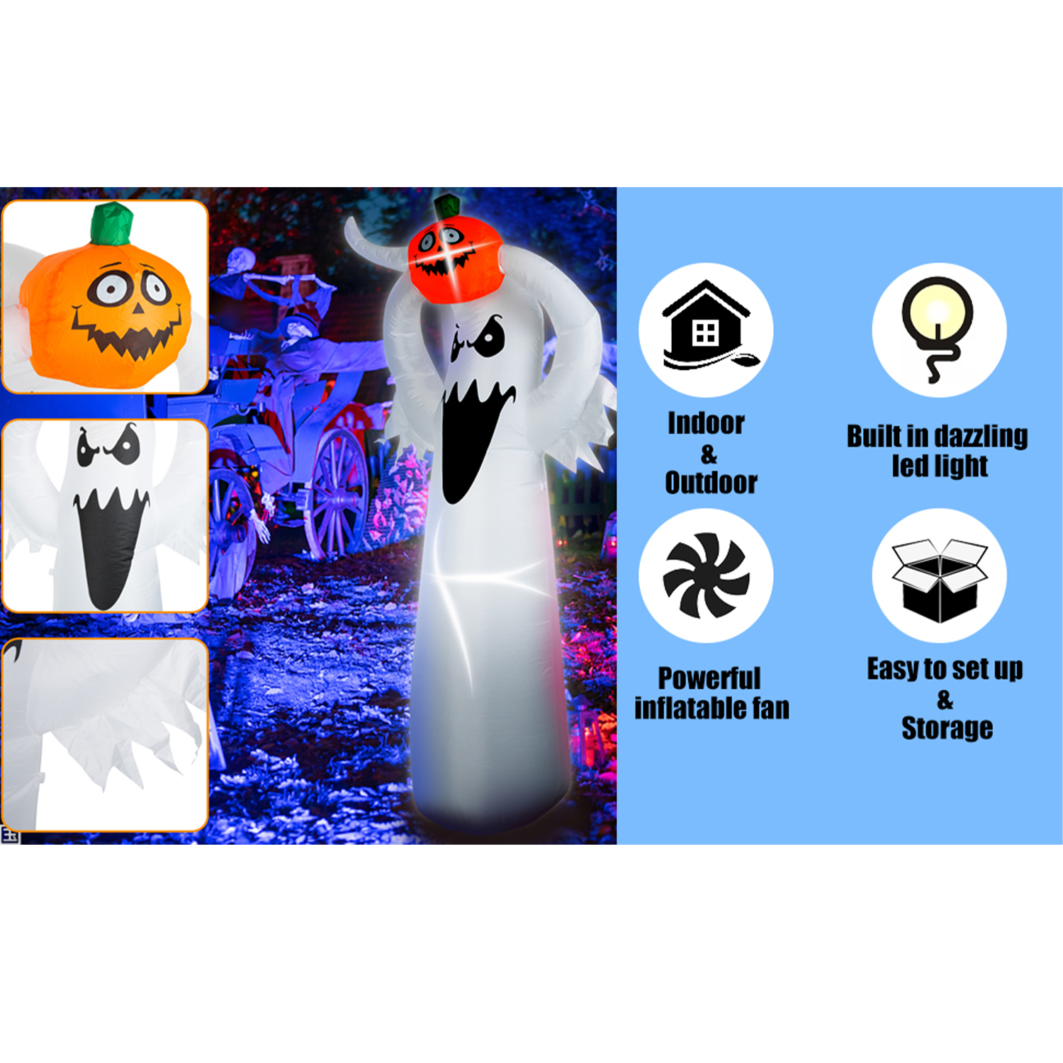 Unique Combination: The white ghost and the scary pumpkin are perfectly combined.