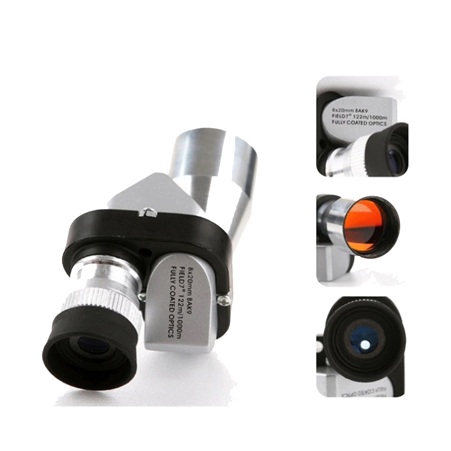 It is 8 times power, 20mm caliber. Suitable for mountaineering, concert, fishing, remote photography, tourism, leisure.