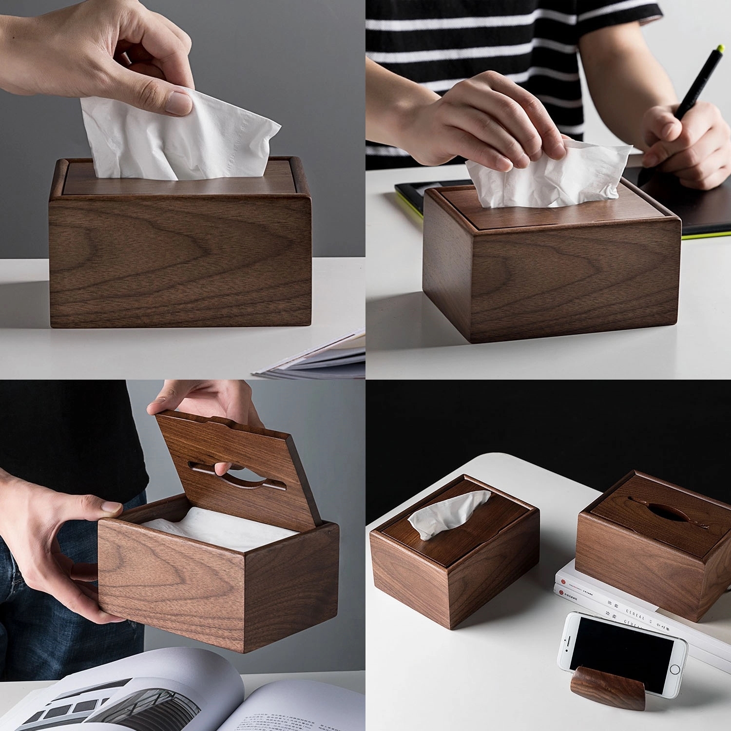 Black Walnut Tissue Box Cover Napkin Dispenser For Home