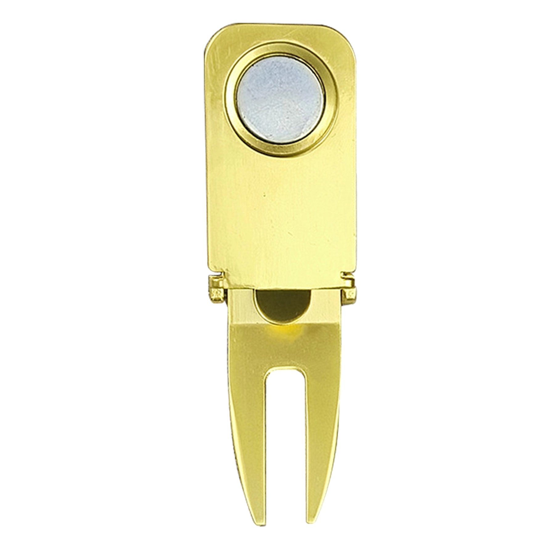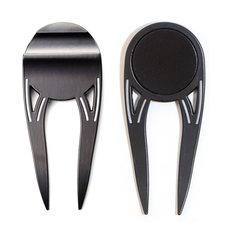 This multi-purpose tool the ultimate golf accessory- includes a magnetic ball marker, divot tool and holder.