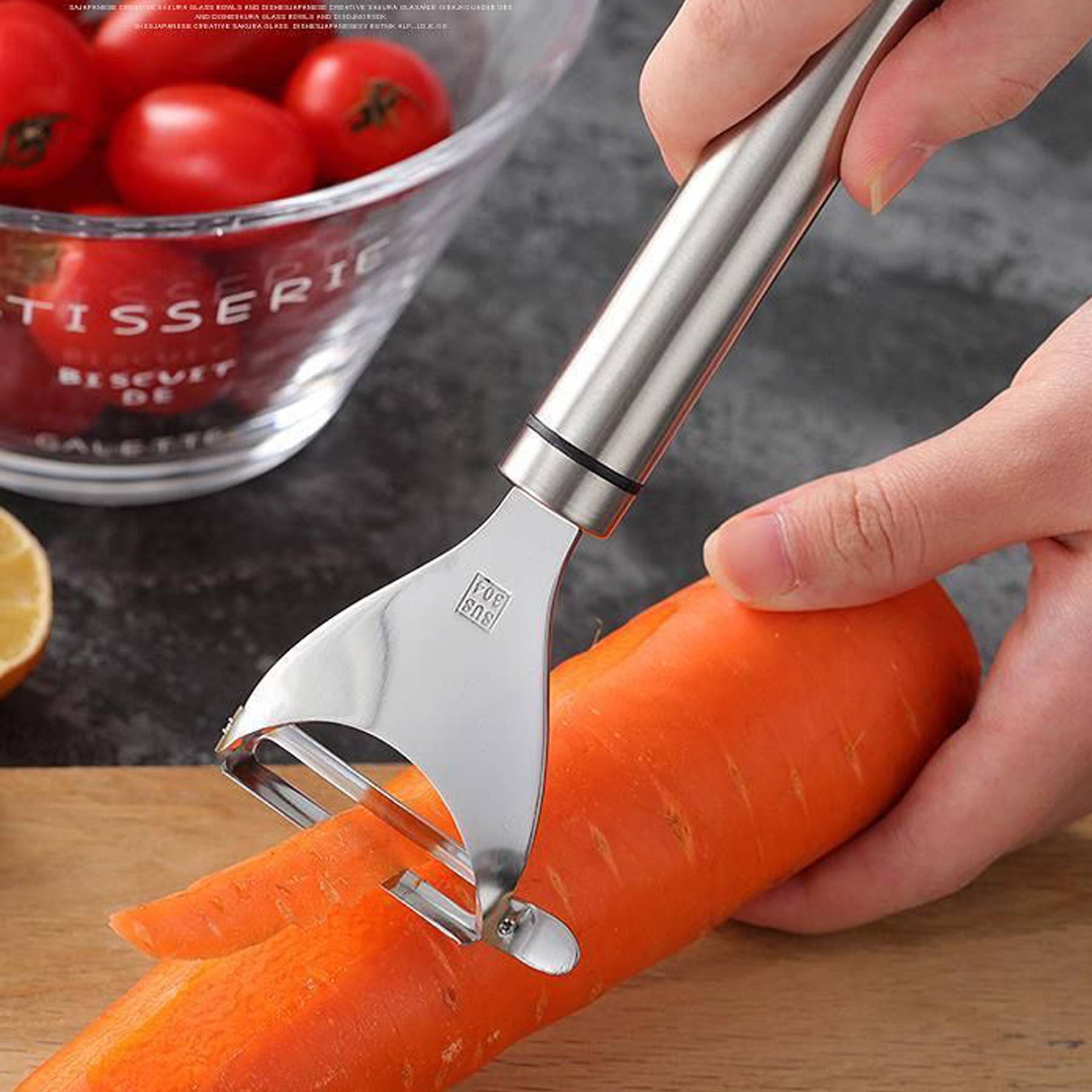 It can be pulled and pushed, and is used for peeling fruits, vegetables, and ingredients. It is a good helper in your kitchen.