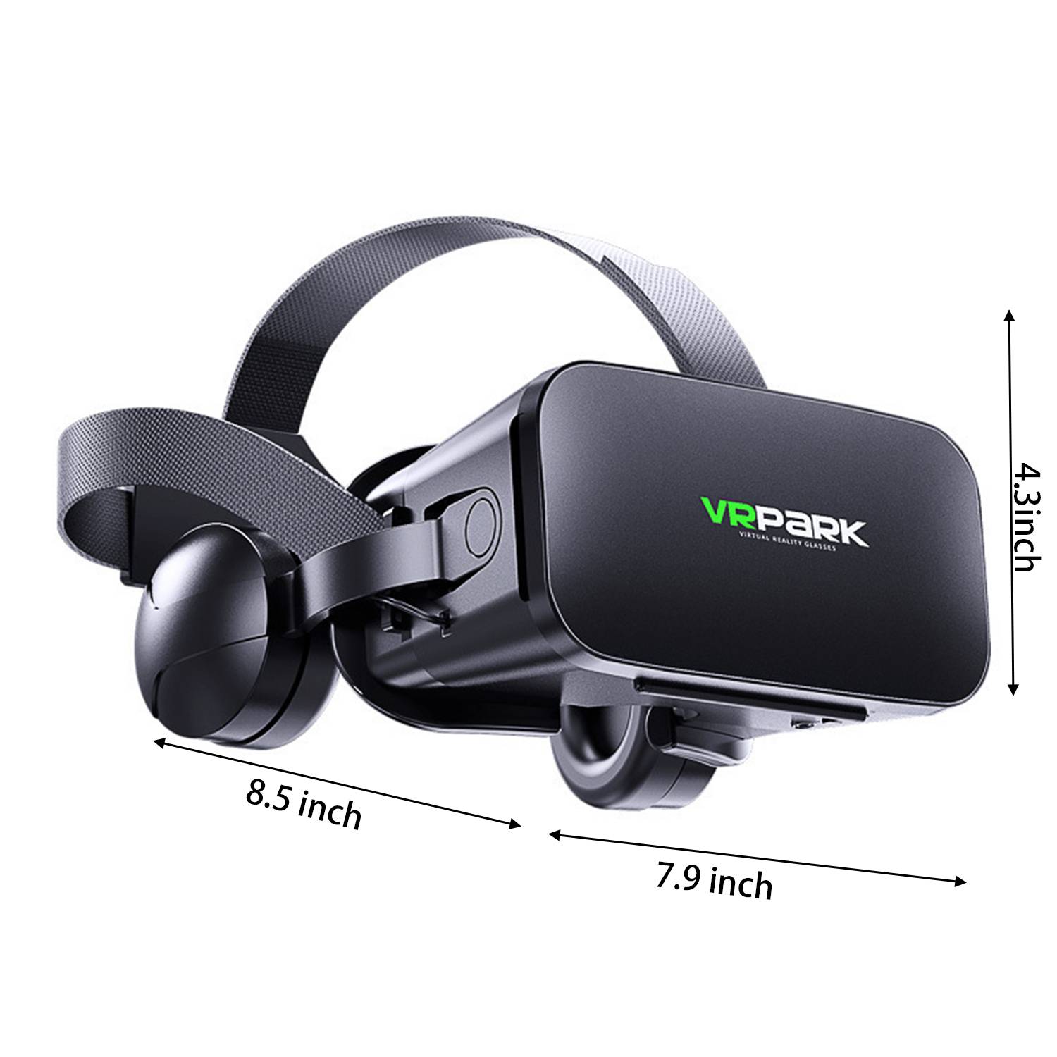 Experience immersive VR with 100° wide-angle lenses and adjustable headphones, in a 7.9″L x 8.5″W x 4.3″H design.