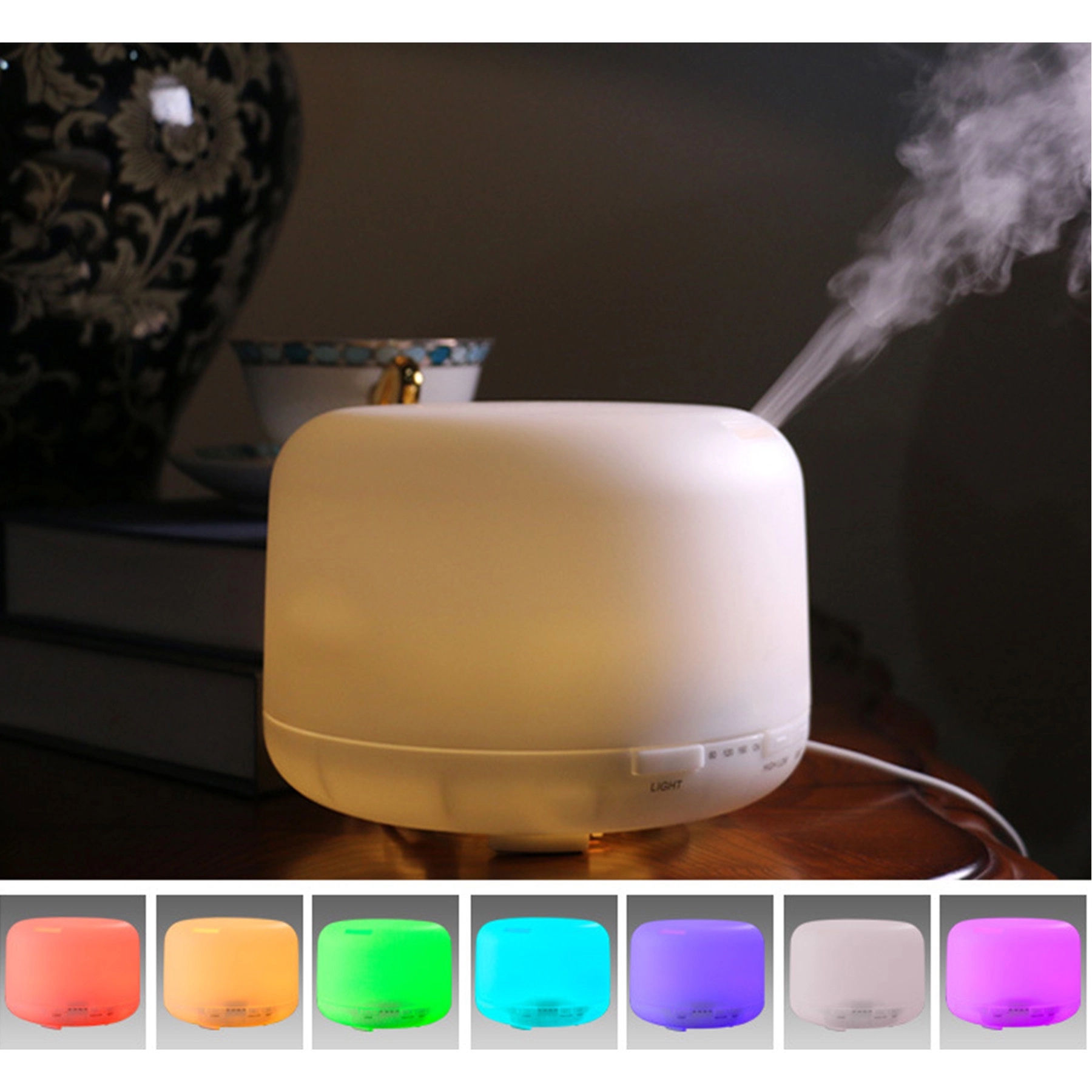 This essential oil diffuser also functions as a humidifier with a large and easy to clean 500ml water tank, 7 different LED light