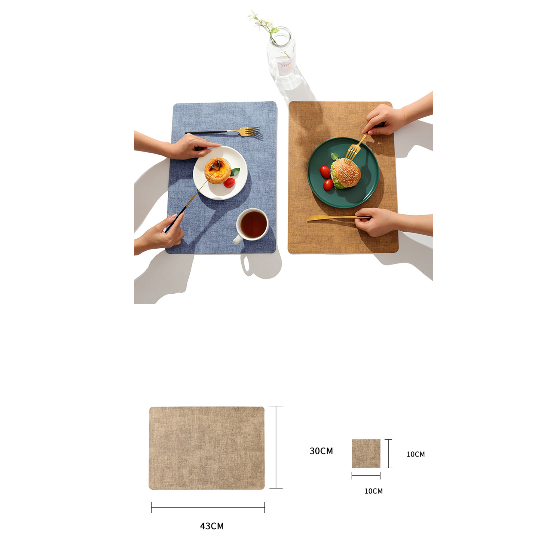 The placemats are made of leather, heavy duty and non slip, no odor, water resistant, easy to clean.